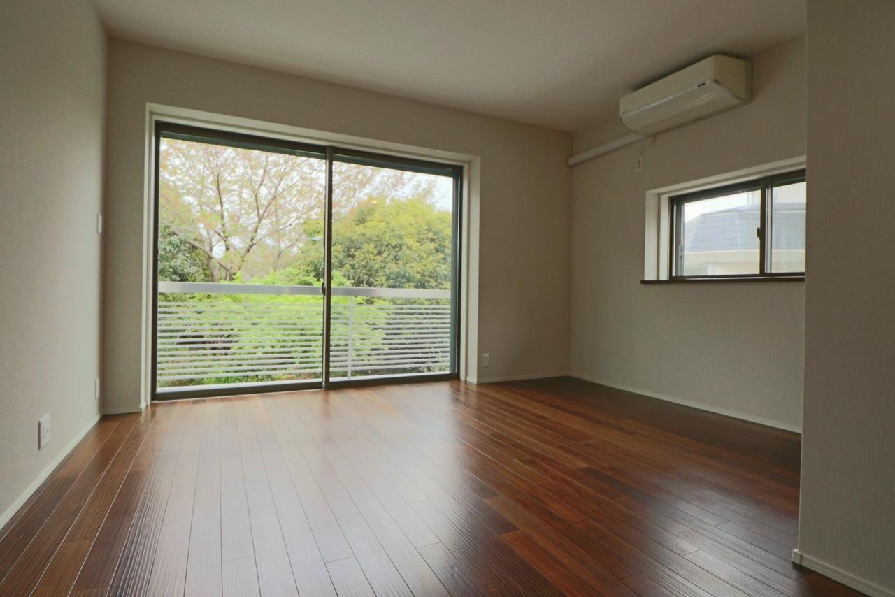 大きなから差し込む光がとても素敵な明るい洋室です。カーテンをするのがもったいないくらい…✨