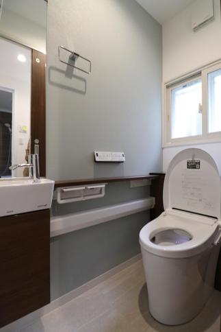 トイレはLIXILのリフォレを選ばれました。リフォレはトイレタンクが便器の後ろの棚に隠されており、トイレ空間を広く見せてくれます✨何気に置き場所に困るトイレットペーパーのストックや掃除道具も棚に収納できるので、空間内がスッキリ片付きます。お掃除しにくい便器の後ろ側が棚なので、お掃除もラクラクです!