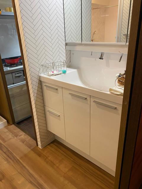豊中市にお住いのS様邸 洗面所と浴室のリフォームをご紹介いたします! 浴室はLIXILのリノビオV、洗面化粧台はLIXILのエルシィを選ばれました。 白基調の爽やかな水まわり空間になりました。