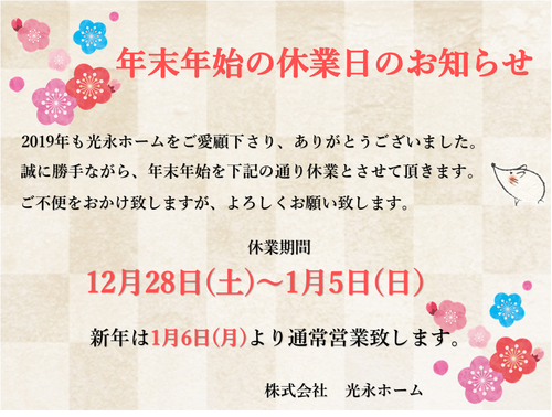 来年も皆様により一層のご満足を頂けるよう、光永ホームスタッフ一同サービスを向上させて行く所存ですので、
