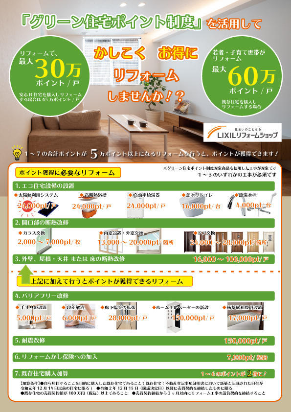 一定の省エネ性能を有する新築やリフォーム工事を行うと、