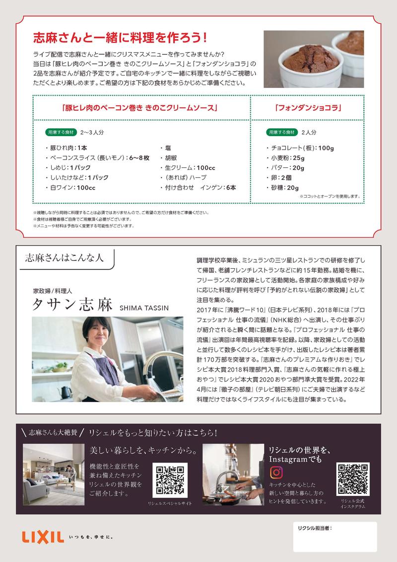 タサン志摩がLIXILのキッチンリシェルSIを使って、お料理をご紹介。