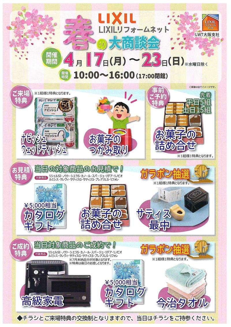 ご来場特典やお見積特典、そしてご成約特典などをご用意しております!