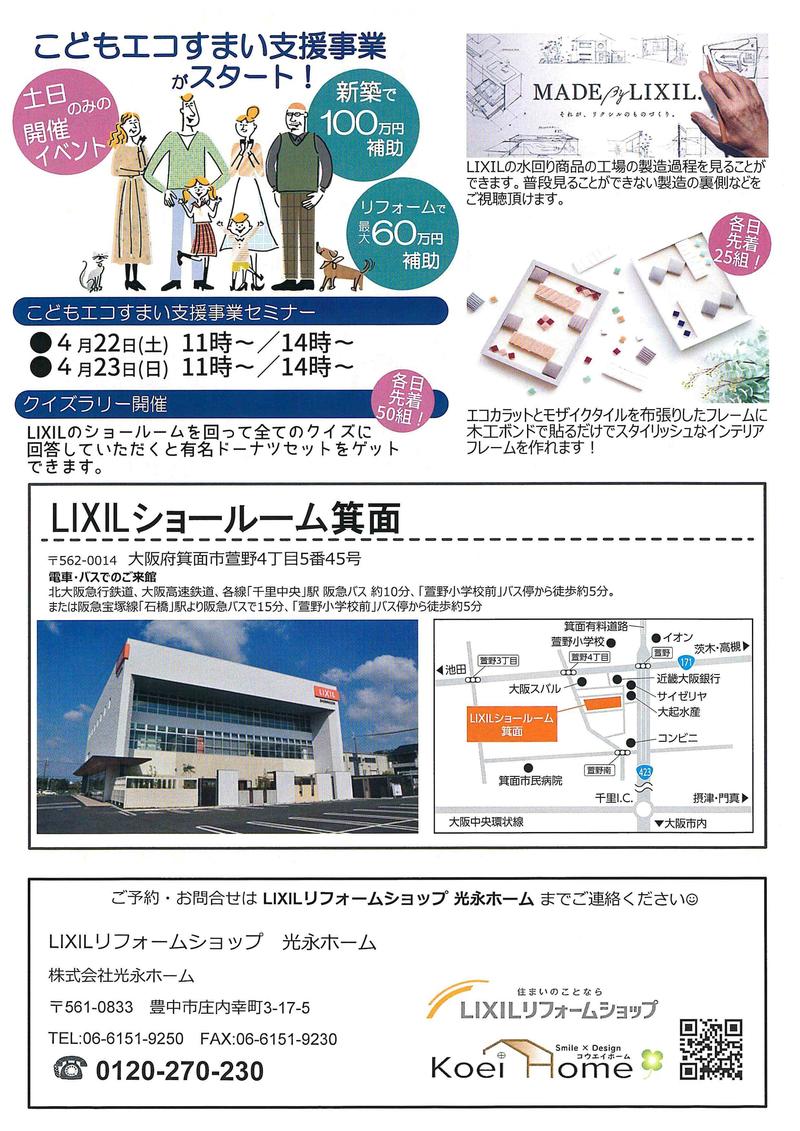 土日はこどもエコすまい支援事業補助金のセミナーやクイズラリーも開催されますよ。