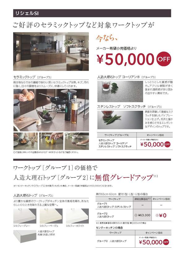 ワークトップが¥50,000- OFF や 無償グレードアップ します!!