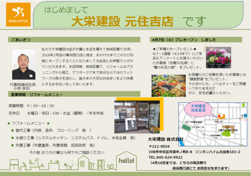 4月7日(火)川崎市元住吉に3号店がオープンしました。