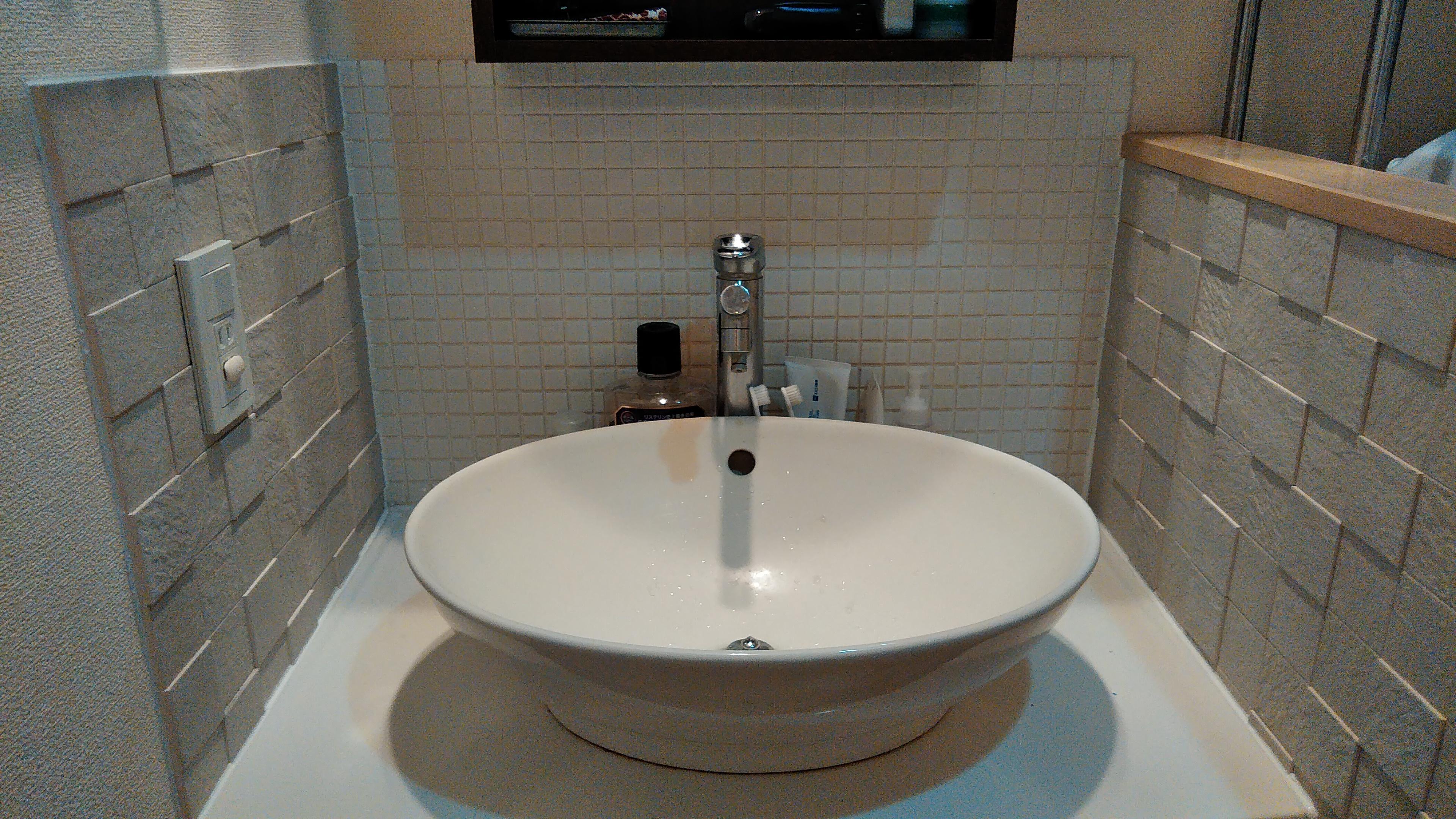エコカラットで変化と高級感を・・・当日余ったエコカラットで洗面にも施工して、とてもおしゃれになりました。