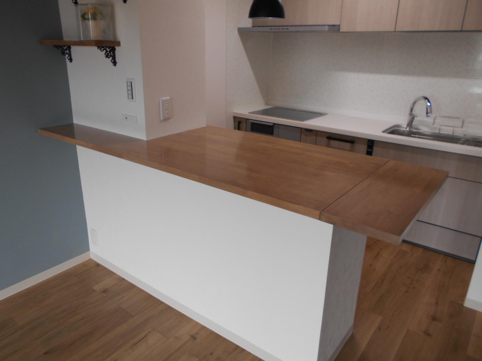 見た目と使いやすさを考え折り畳みが出来る造作カウンターや飾り棚を提案させて頂きました。
