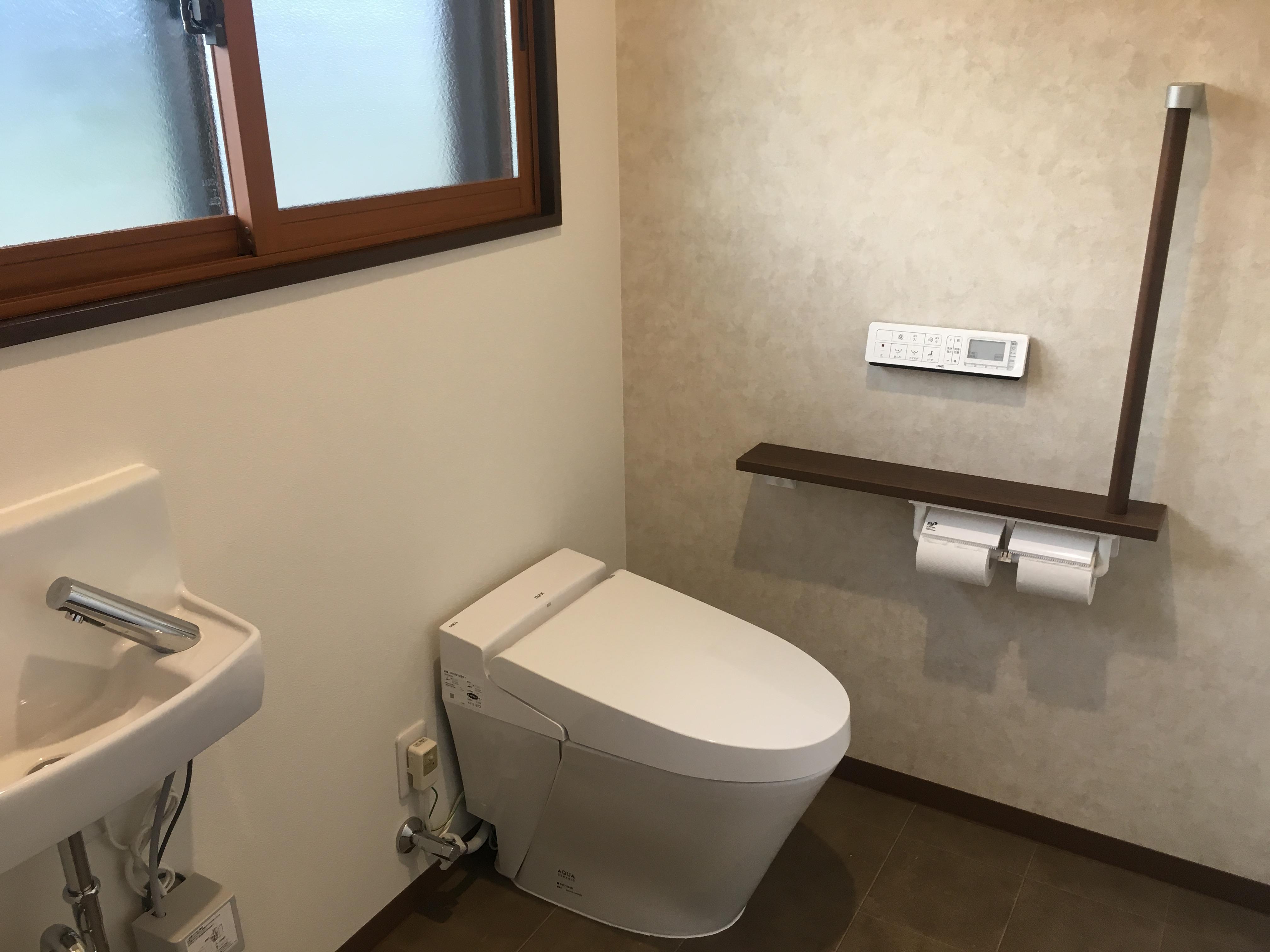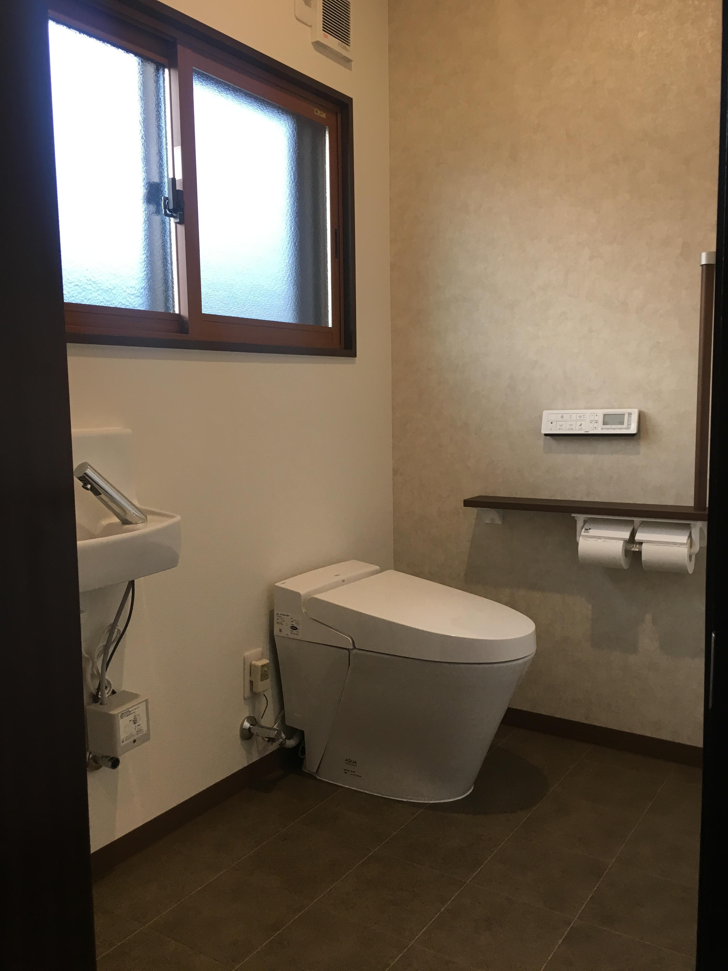 今後の使い勝手を考えて和式便器から洋式便器に、タイルの床をクッションフロアに変え、インプラスと断熱材で少しでも暖かいスペースにと、ご依頼いただきました。飽きの来ないシンプルな色合いでまとめ、落ち着いた空間に仕上がりました。