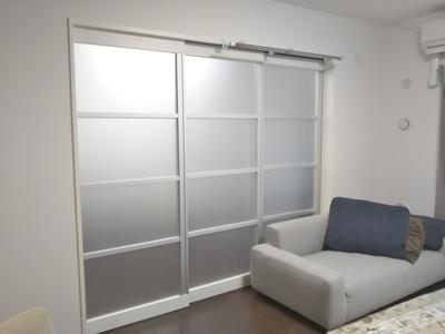 真っ白で閉鎖的な建具を透明にすることで、部屋も広く感じ光も通して気持ちよく仕上がりました。