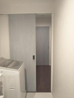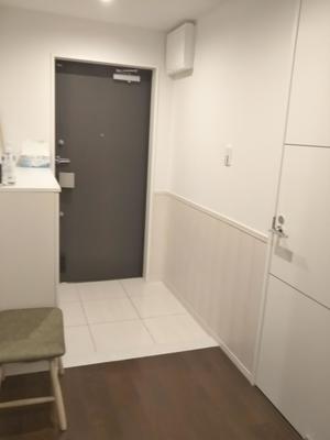 まだまだ新しいマンションでしたが、真っ白すぎて落ち着かないとのことで、解放感とアクセントに建具を入替させていただきました。さらに、自転車の玄関の出入りに気を使っているとのことで、腰壁を設置させていただきました。