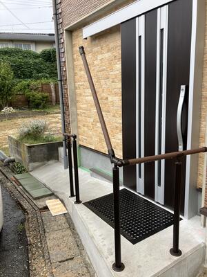 インナーガレージをワンルームに改修 ご高齢の為、車いすや補助器具を使って移動できるように配慮しました 外部の手すりも可動式を採用して車いすでも安全に出入りできます