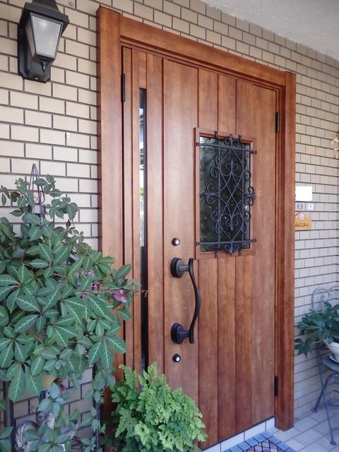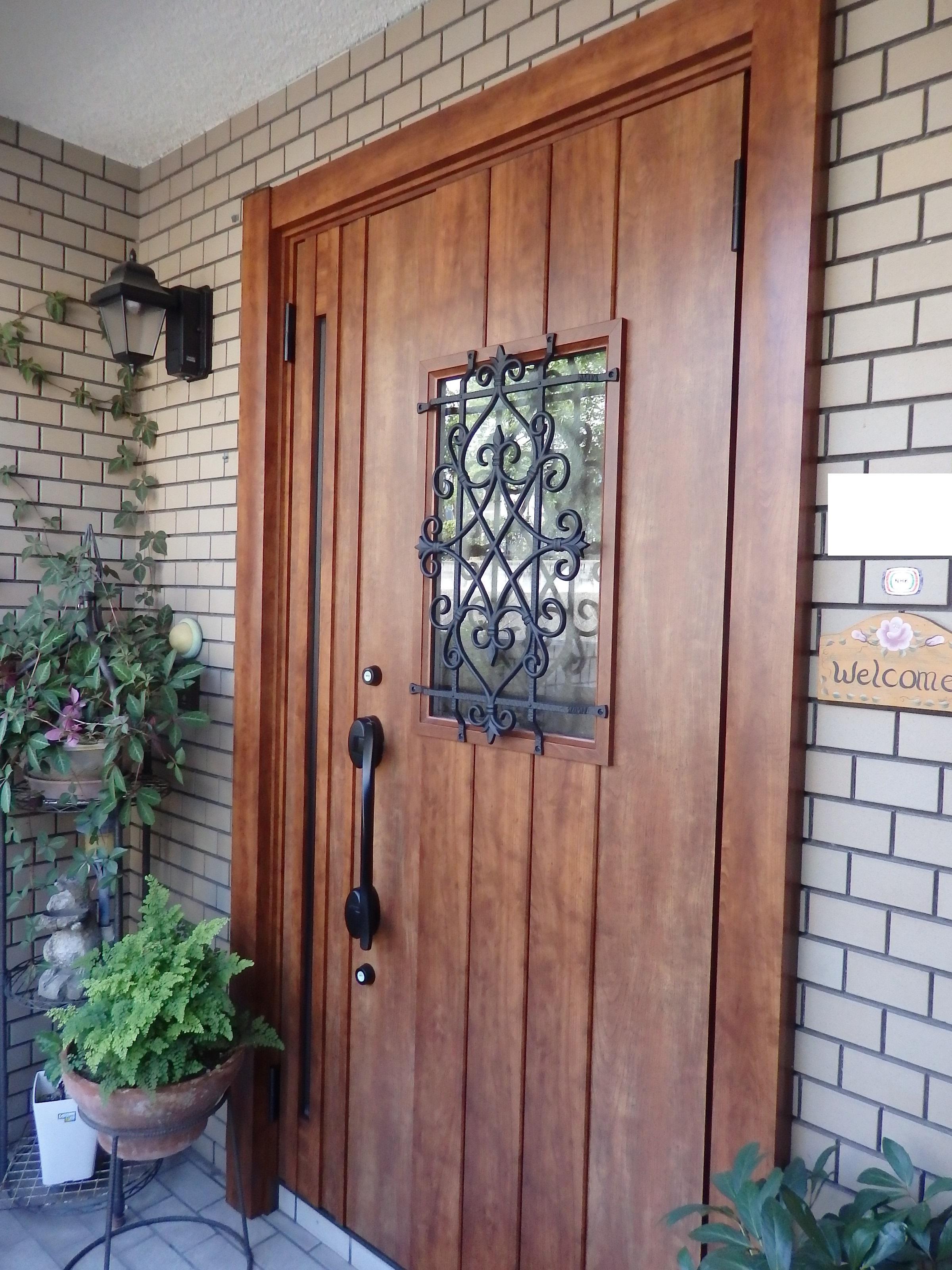 玄関扉の取替工事を行いました。既存の枠の上から新しい枠を取付けるカバー工法により、外壁を解体することなく玄関扉を新しくすることが出来ます。デザインとカラーも何度もお打合せさせて頂き、納得のいく出来栄えになりました。