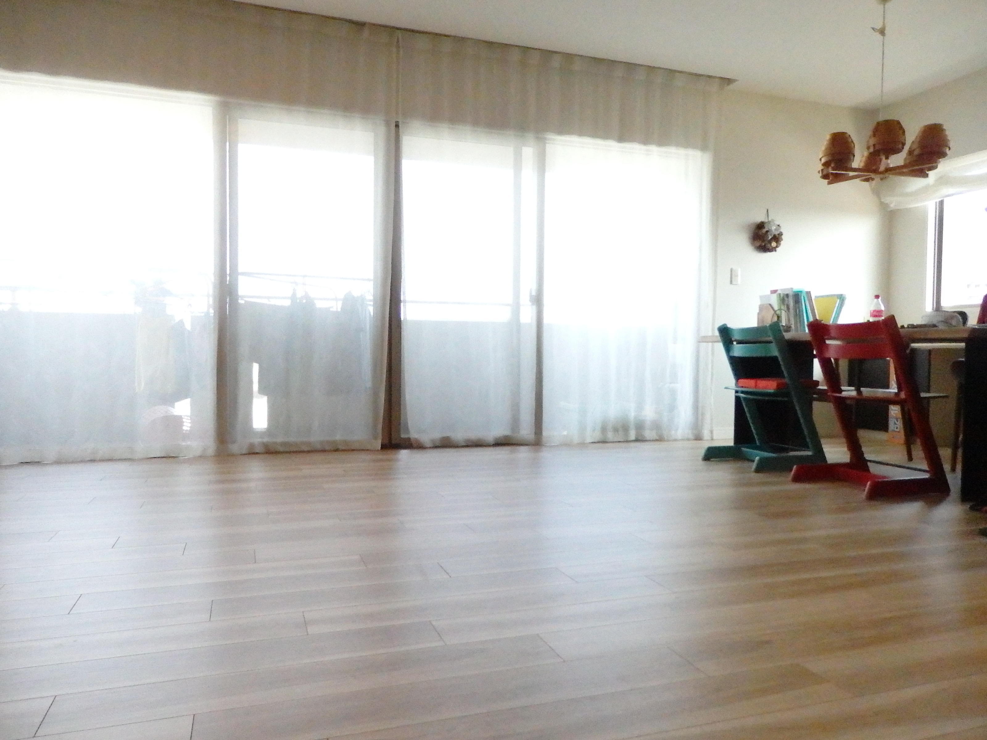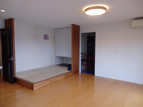 子供たちの成長に合わせて、リビングをより広く快適に過ごせるようにしたいということで、今回段上がりの和室をなくす工事を行いました。リビングと一体感が生まれると同時に元々の和室の格子を一部残すことによって、良いアクセントにもなりました。壁一面のクロスも奥様が非常に悩まれて決めただけに、素敵な空間に生まれ変わりました。