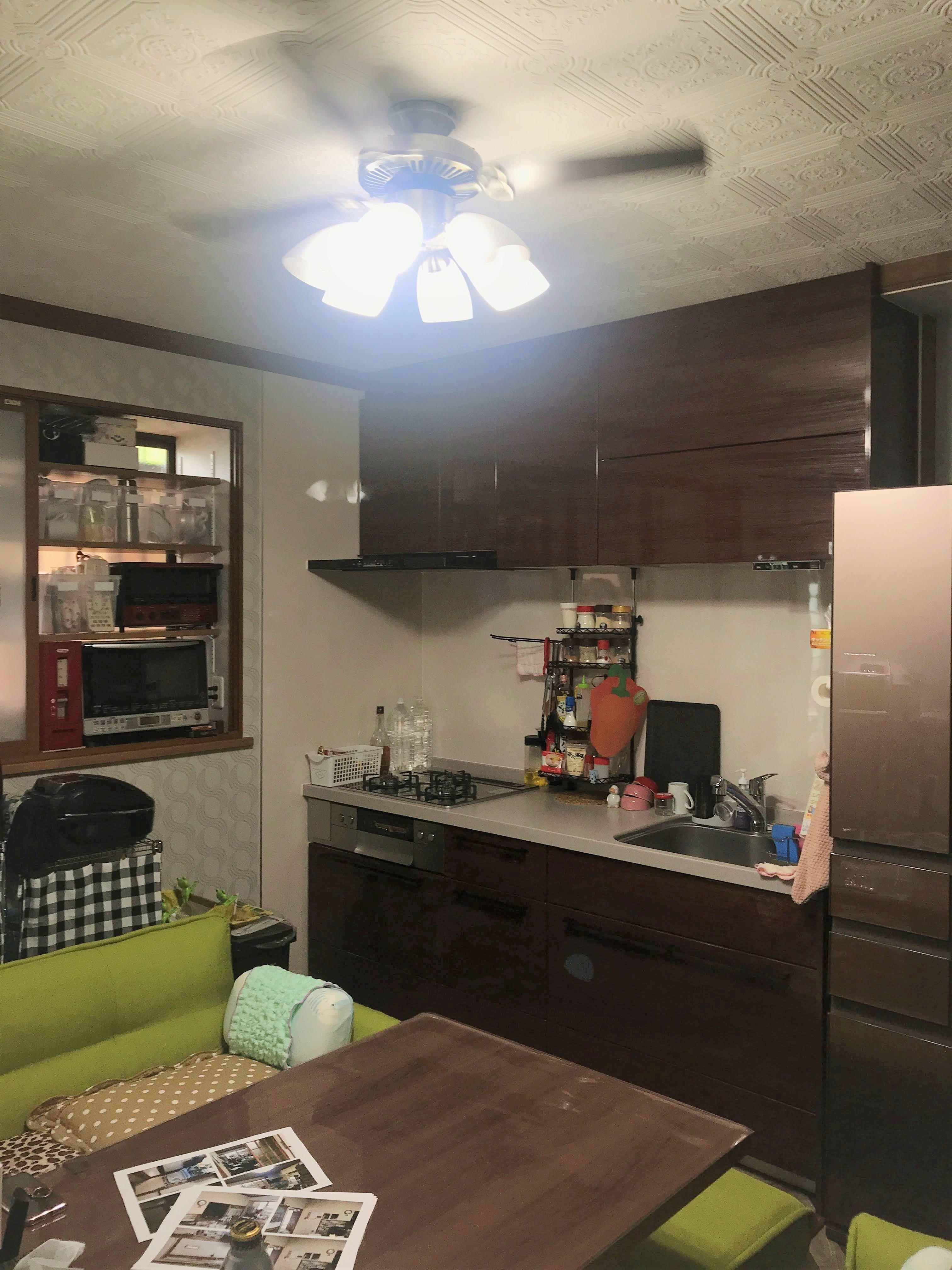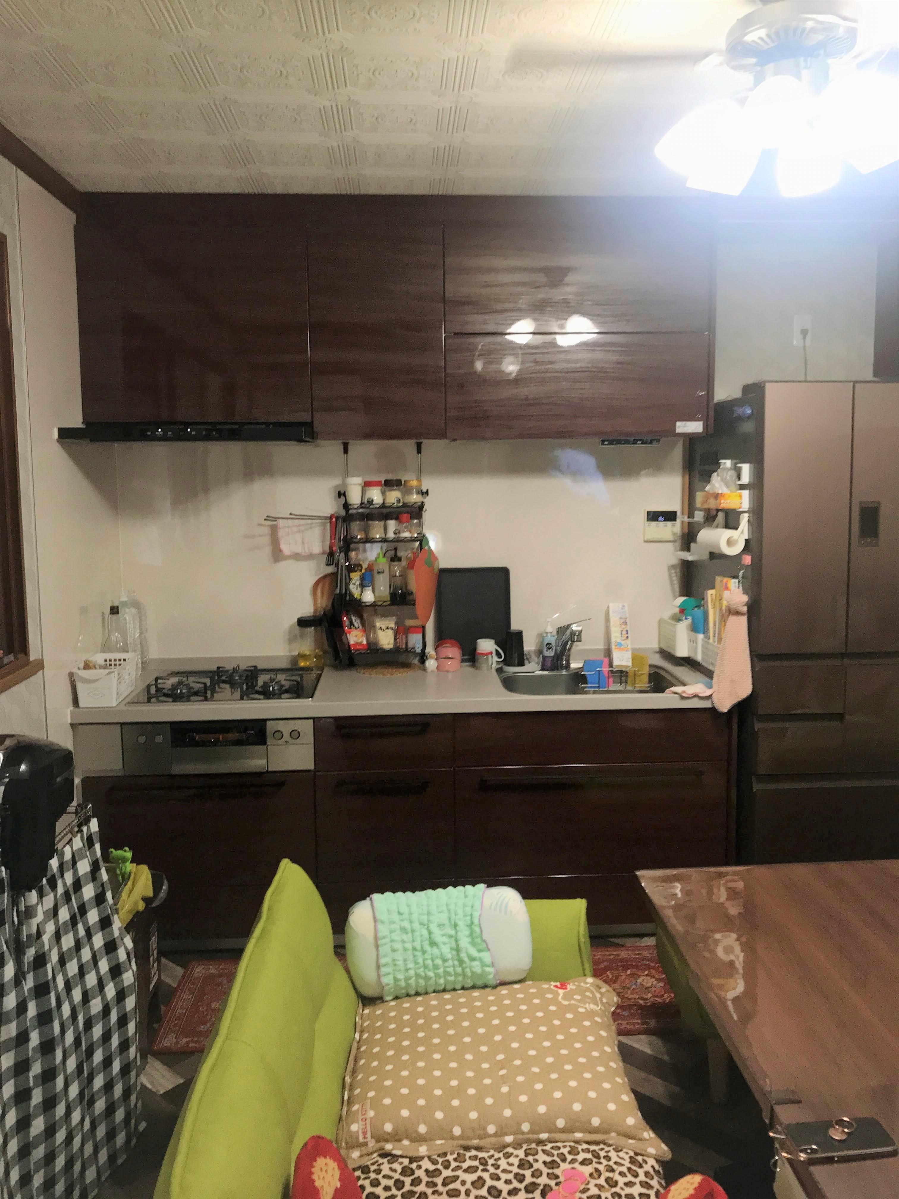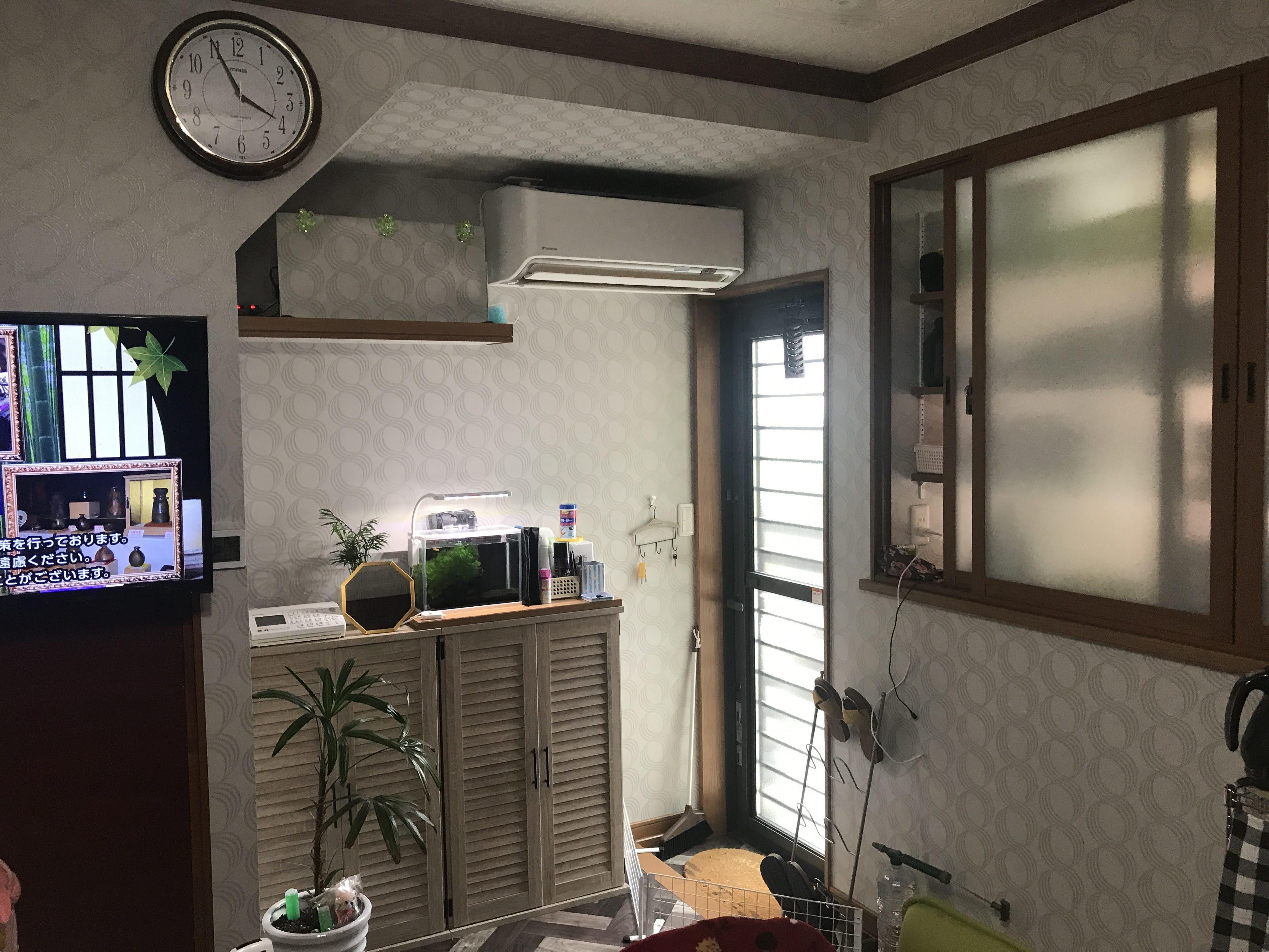 わんちゃんやねこちゃん、熱帯魚などたくさんのペットといっしょに暮らしておられるF様。 通わせていただくうちに最初は警戒されていたわんちゃんが懐いてくれたのがとてもうれしかったです。 また最初に訪問させていただいた時、DIYでご自分の好きなイメージの内装に飾り付けておられるのが印象的でした。 工事が進む中でも元々設置してあった吊戸棚にご自分でシートを貼られてリフォーム後のインテリアに合わせてリメイクされていました。 いろいろなポイントにこだわりながら得意なDIYを組み合わせてリフォームを楽しんでいただき、ご満足いただくことができて嬉しく思います。