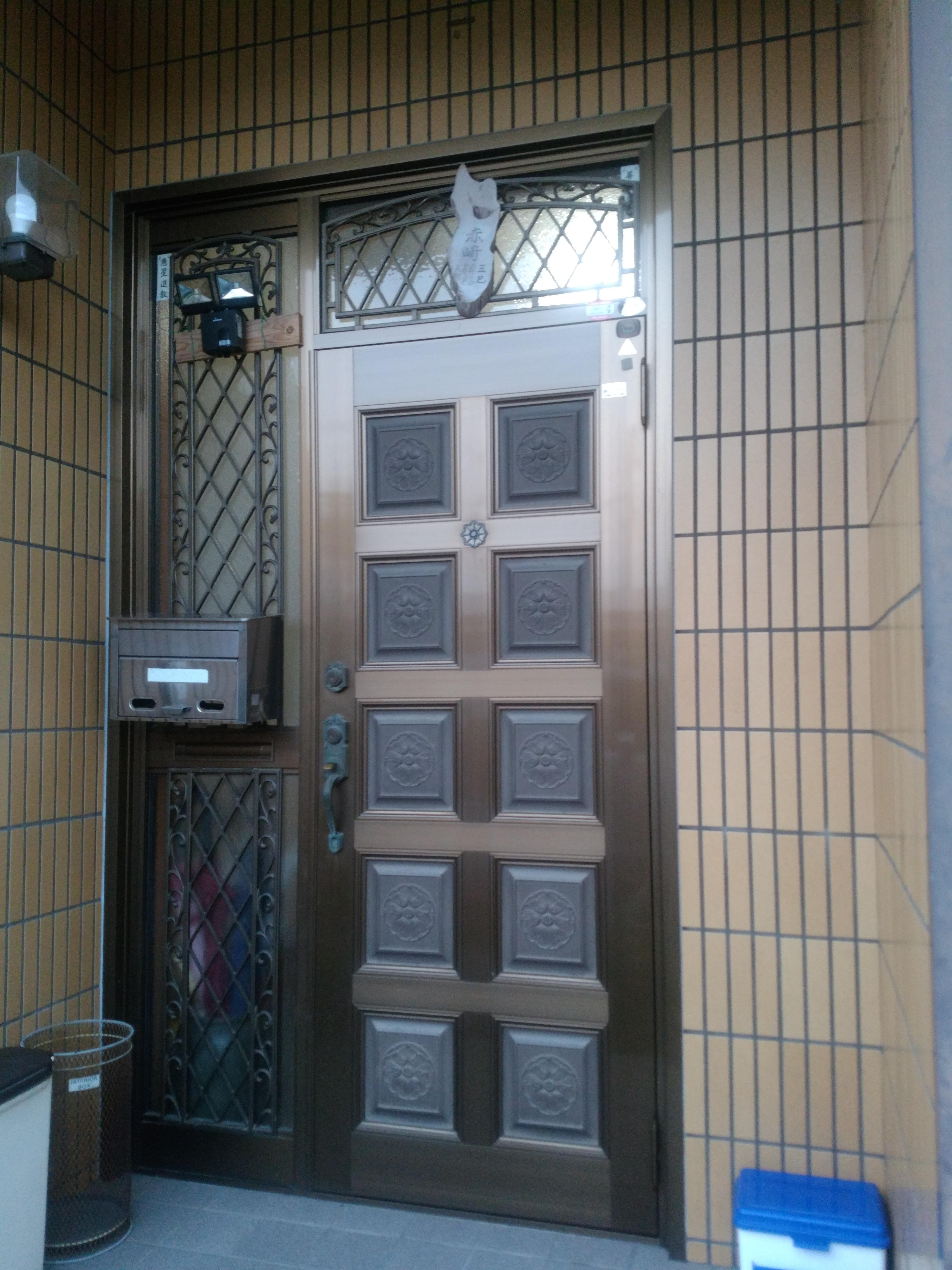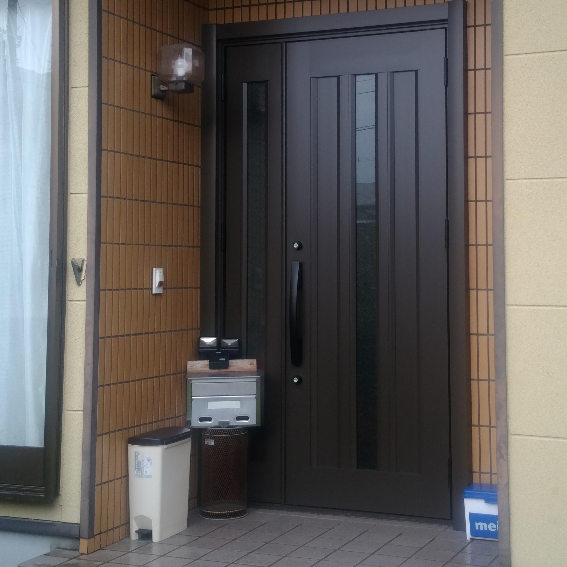 住まいの顔の玄関をワンデーリフォーム、一緒に勝手口も使いやすく取り替えました。