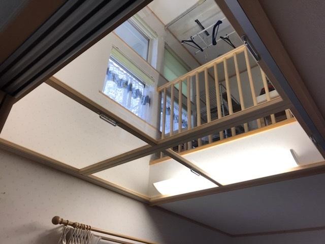 冬暖かい空気が二階に行き寒い。天井を塞いでしまうと暗くなってしまうため、光は取り入れたいとのことでした。 ポりカーボネートを使い、光を取り入れつつ、暖かい空気が吹き抜けから上に行かないよう蓋をしました。 開放感はそのままに冬でも寒さを感じない一階の空間となりました。