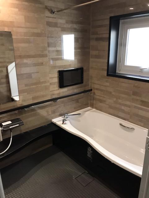 モデルチェンジしたKタイプのお風呂をお選びいただきました。 テレビ・スピーカーを付けムードたっぷりでゆっくりくつろげる空間になりました。
