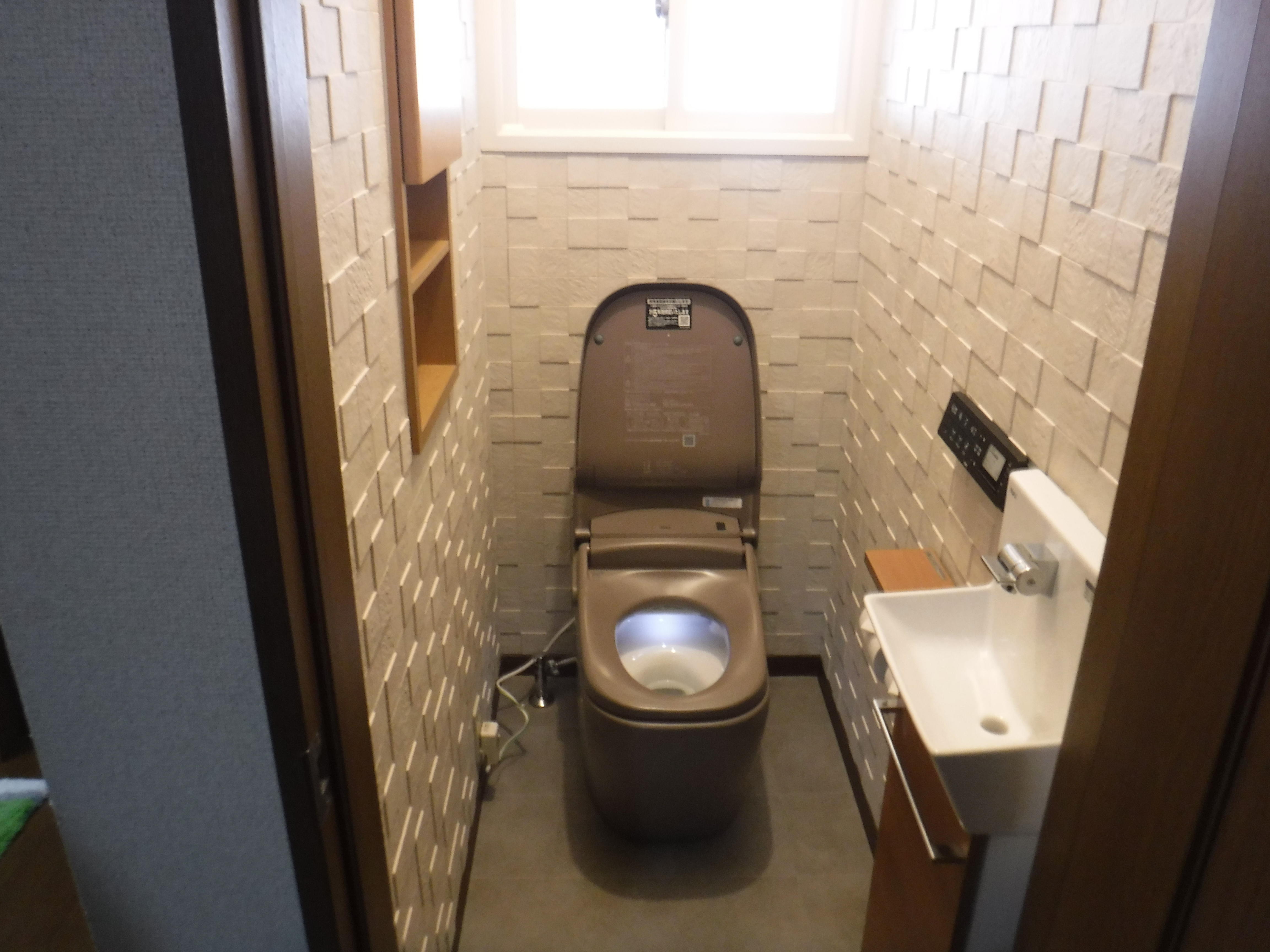 便器の取り替えと同時に、空間そのものをリラックスできる雰囲気に変化させました! 見た目の変化だけでなく、目には見えない機能性もしっかり備えたトイレ空間となりました!家族でトイレの取り合いになるほど素敵な空間へとなりました!