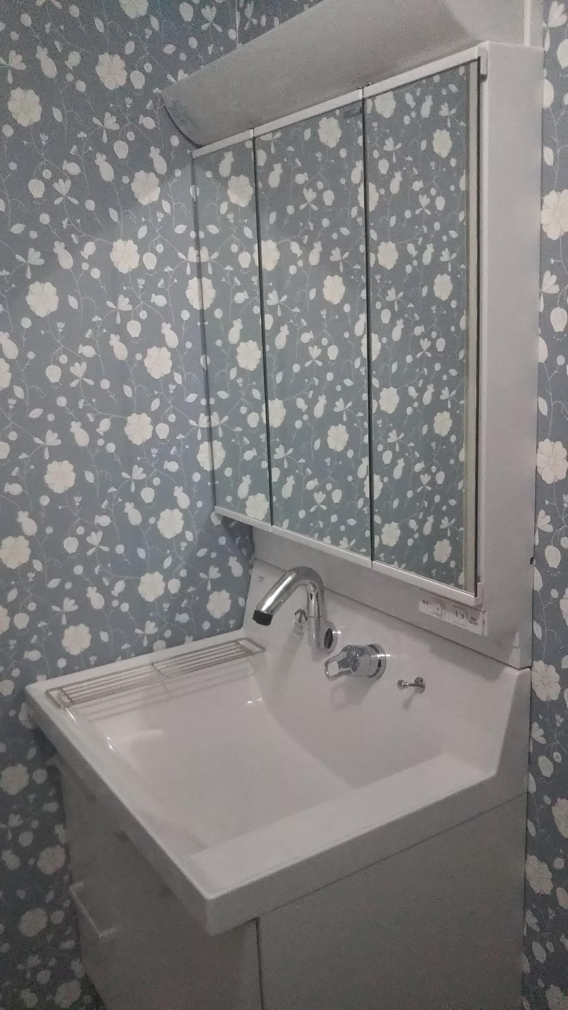 ついつい物が溢れがちになる洗面化粧台。 お手入れをする際にも細々したものを一度移動してという手間が以前はありました。 新しい洗面化粧台はスッキリ収納で、見た目にも清潔感が増しました。 洗面化粧室全体もクロスの貼り替えで印象が変わりました。 毎日朝晩つかう場所だから使い易く、お手入れし易い洗面化粧台は様々な負担を軽減します。