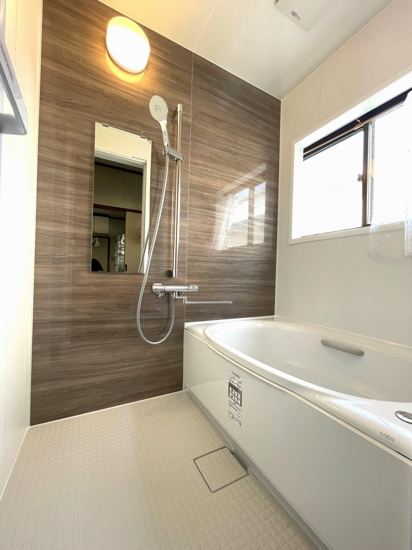 既存の浴室は、壁と床がタイル張りの在来工法だったため、足元からヒヤッとしていました。 新しく取り替えたLIXILの浴槽はダブルの保温構造でお湯が冷めにくく、足元もヒヤッとしない「キレイサーモフロア」という床になっているので、今回のリフォームを経て、より快適な空間に生まれ変わることができました。