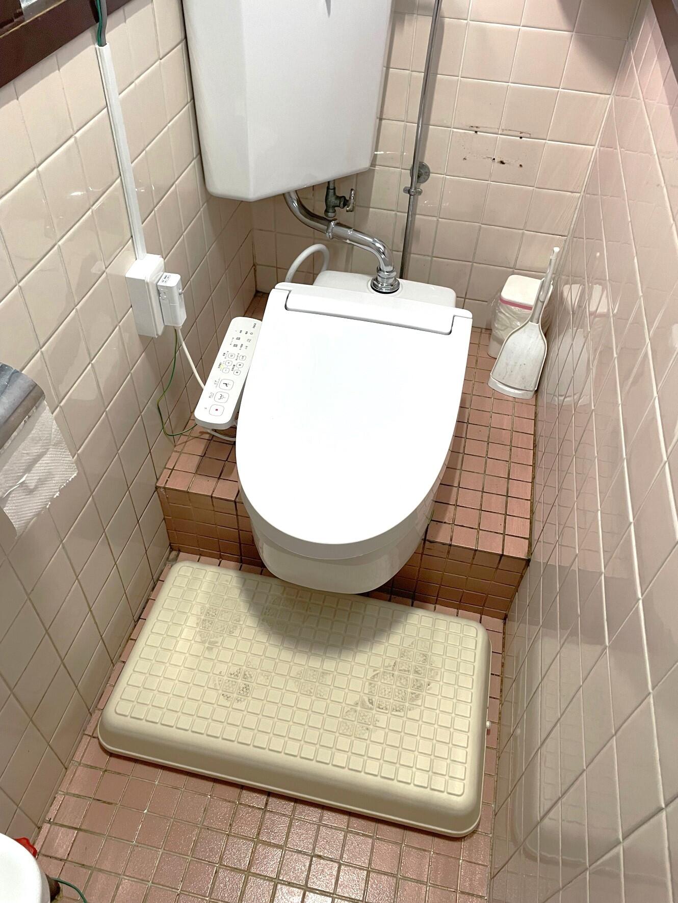 ■リフォームポイント 通常和式トイレから洋式トイレにすると予算も工期もかかりますが、低予算というご要望があり和式アタッチメントを採用しました。