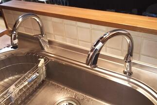 また、キッチン水栓はハンズフリータイプに取り替え、手をかざすだけで水が出るので衛生的で便利。