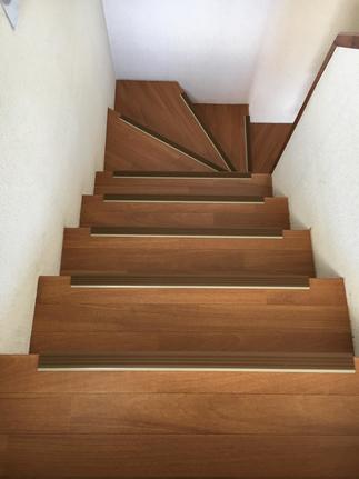 鉄骨階段の為、クッションフロアーで貼り替えます。