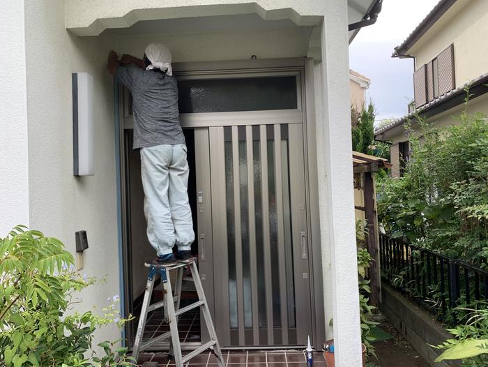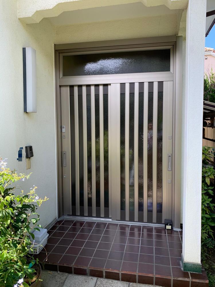 今回、木製玄関ドアが古くなってしまって、勝手を変えたいということだったので、 引戸に変更しました!! 既存の玄関と同じように光が差し込むのと、リモコンキー付きなので、リフォームして一段と使い易くなりました! そのリモコンキーをポッケの中に入れて置いて両手が塞がったままでも、ドアについてるボタンを押せば開きます。 ドアを閉めれば、自動的に鍵がかかるので、閉め忘れることはありません。