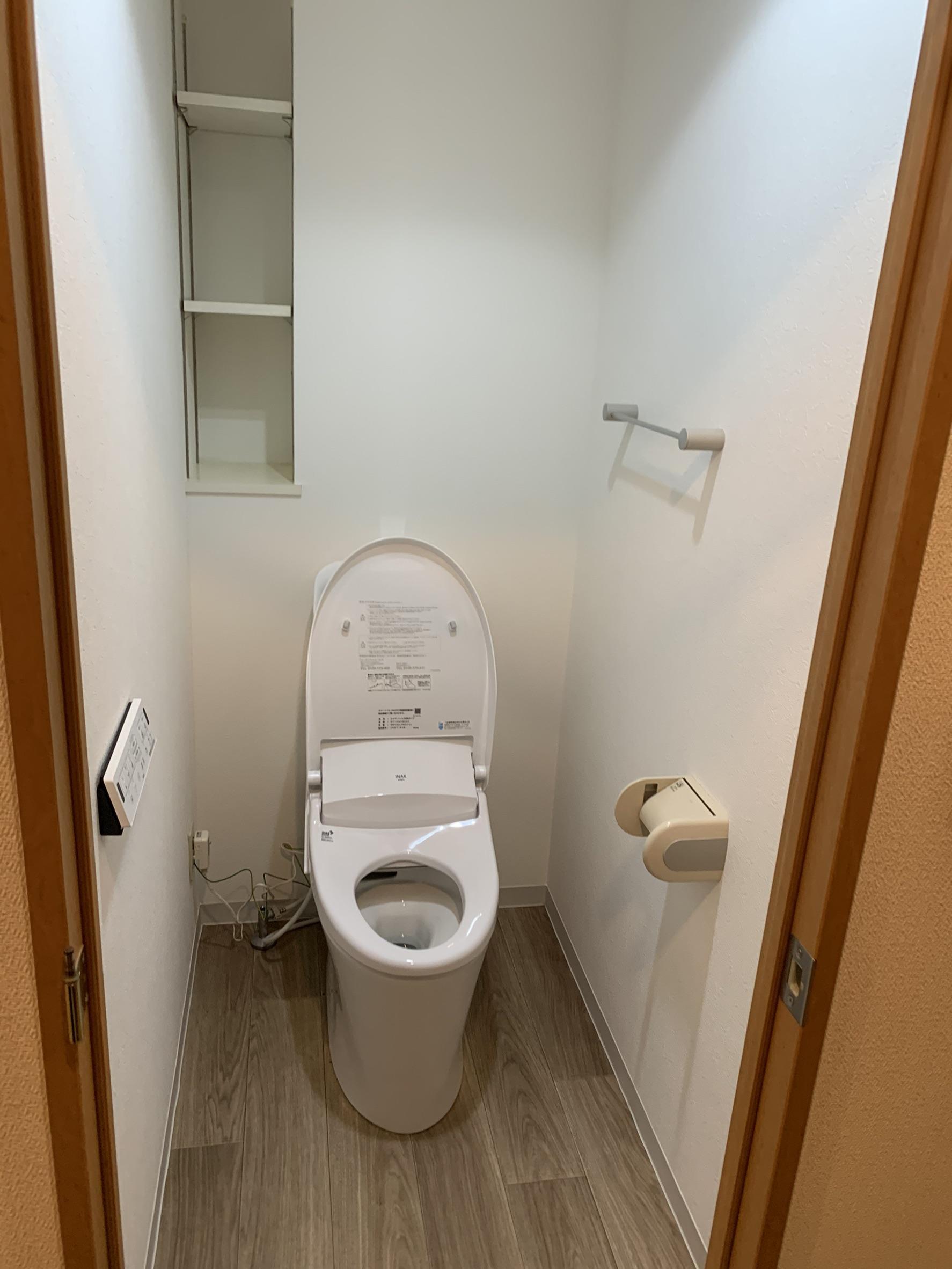 同時に壁紙・クッションフロアーも取り替えたので、素敵なトイレ空間に仕上がりました。