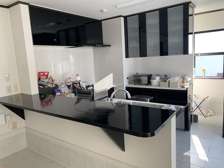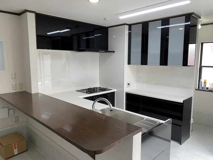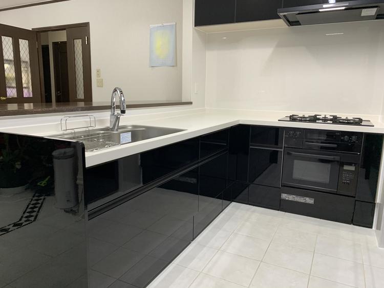 今回、施工したキッチンは上品なブラック!!すごく都会的な雰囲気になりました。