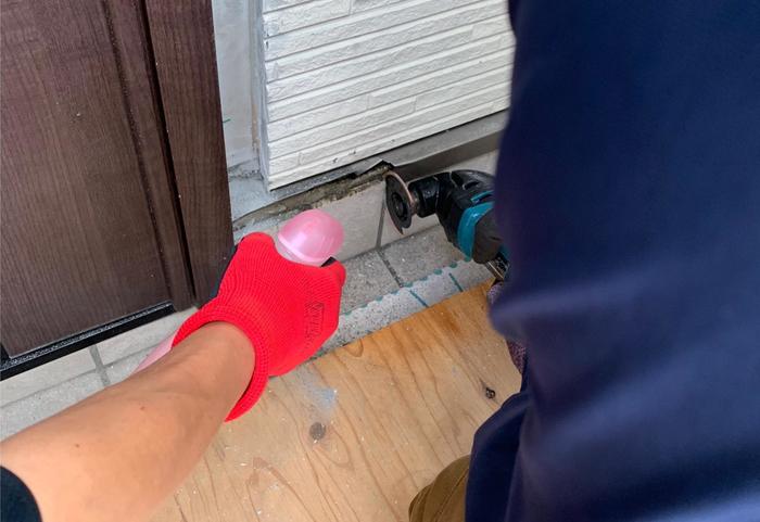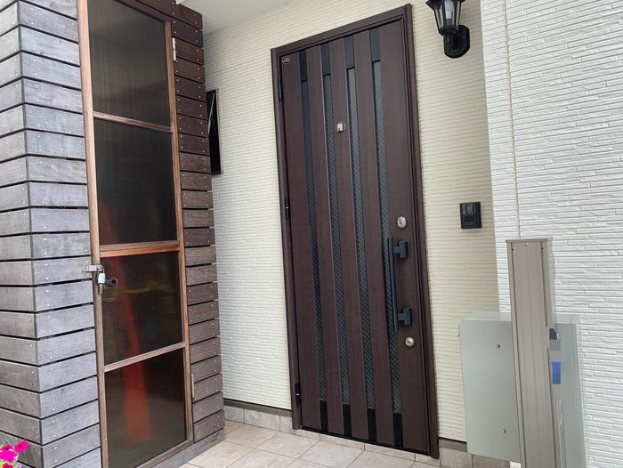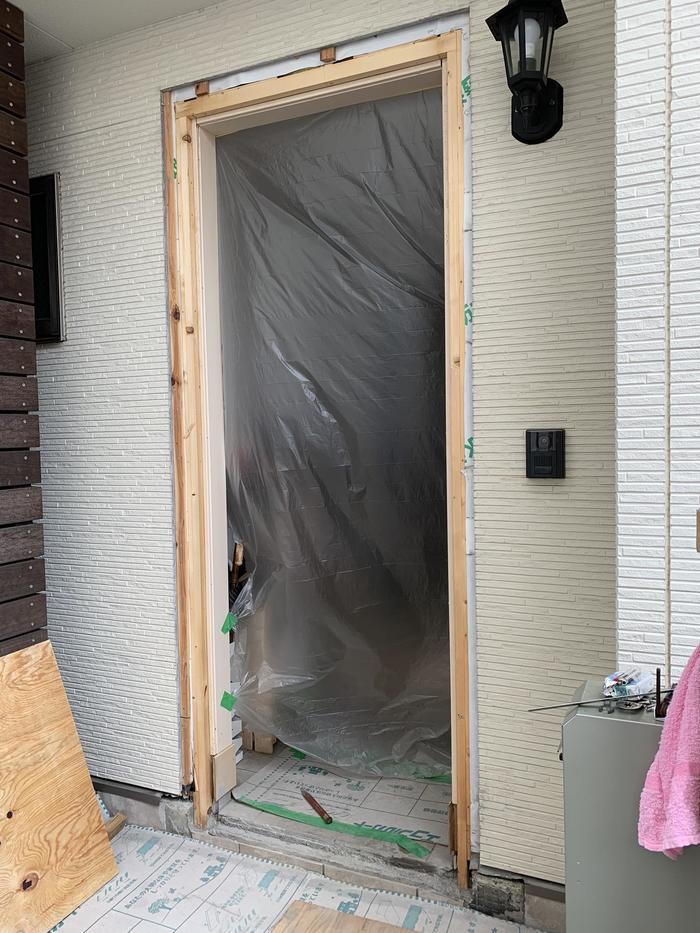 今回は玄関ドアの交換です。ドアのサイズを狭めたくないということで、リシェントとではなく、ジエスタに交換することになりました。