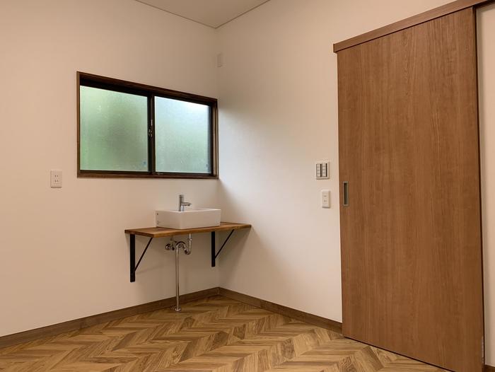 元々あったミニキッチンを利用して、小ぶりで可愛い手洗い場を設けました。
