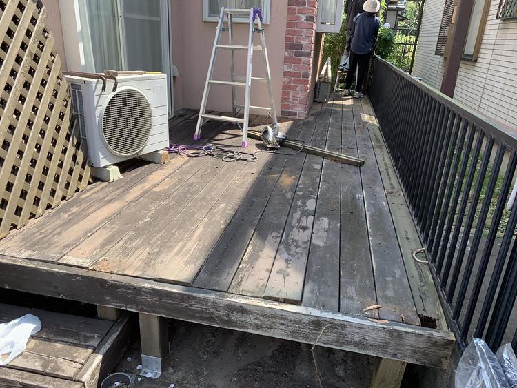今回、ウッドデッキが経年劣化で弱っていたので、ぬれ縁にモデルチェンジ致しました。