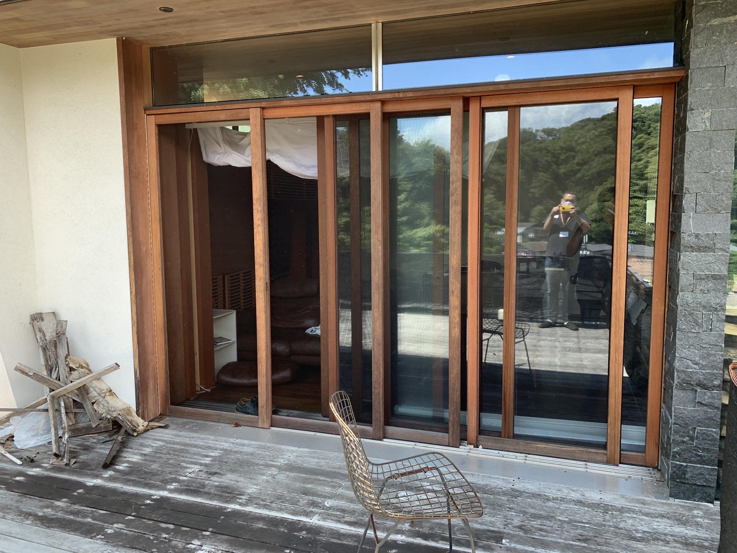 リビングの木製サッシが劣化により、すきま風や虫が入り込んできてしまうとご相談を受けました。 お客様と何度もお打ち合わせを重ね、大開口に合わせ特注のテラス窓を設置。スッキリとした印象に変わりました。 アルミサッシにしたことにより悩みも解消され、お客様には大変喜ばれました。