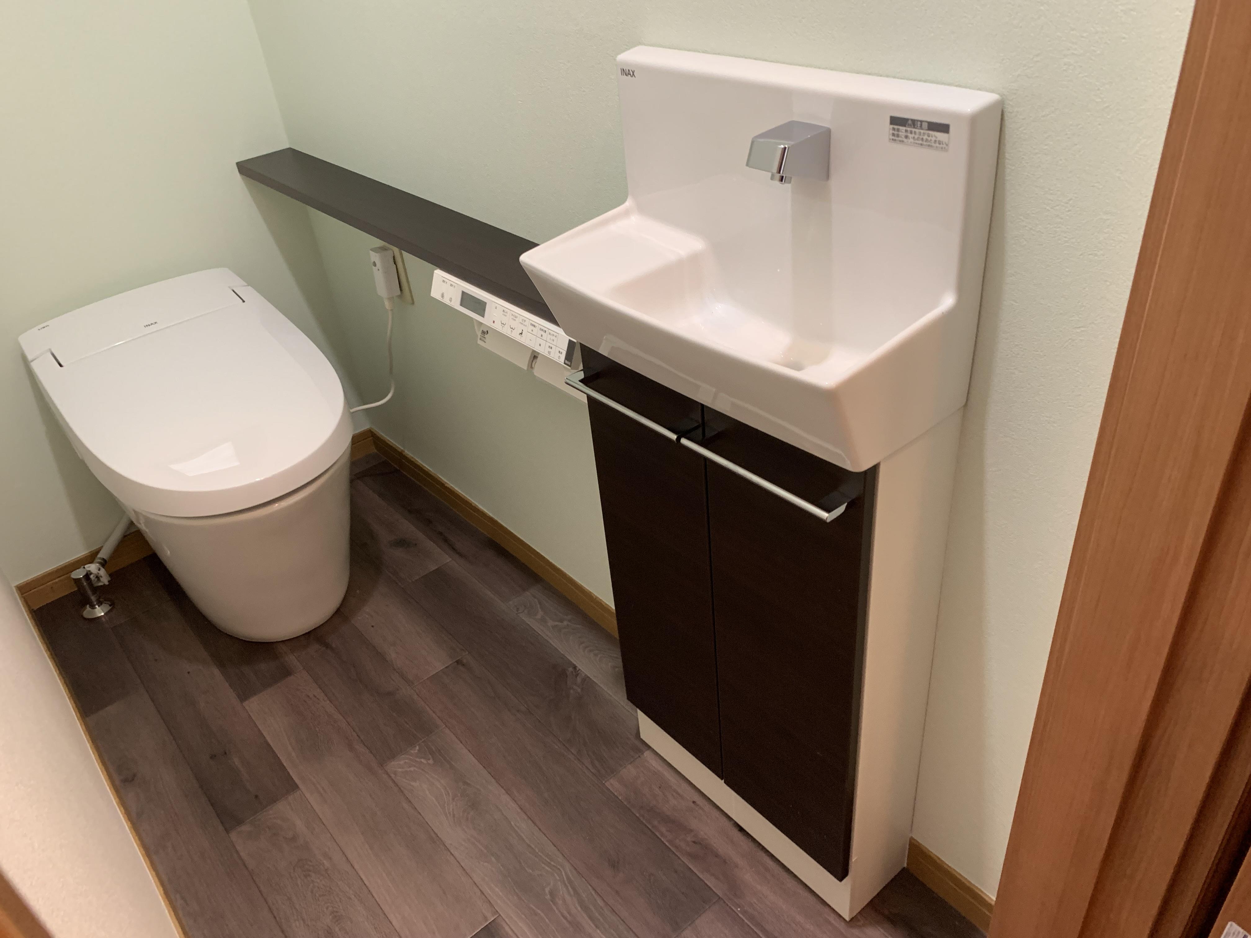 サティスSタンク付トイレよりもコンパクトで前方や上方向の空間が広く使えるので、スッキリしていて落ち着きます。機能も充実していて、タンクのお手入れは必要ないので、お掃除が簡単に!さらに最新のキレイ機能を搭載しているので、忙しい方にはおすすめです。また、手洗い部分には「コフレル」を設置しました。狭いトイレにもスッキリと納まり、コンパクトでもしっかり収納できます。手洗部もさまざまなバリエーションがありますので、自分好みのトイレ空間にすることが可能です。