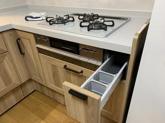 コンロ脇小引き出しスパイスなどが収納できる便利な引出し。