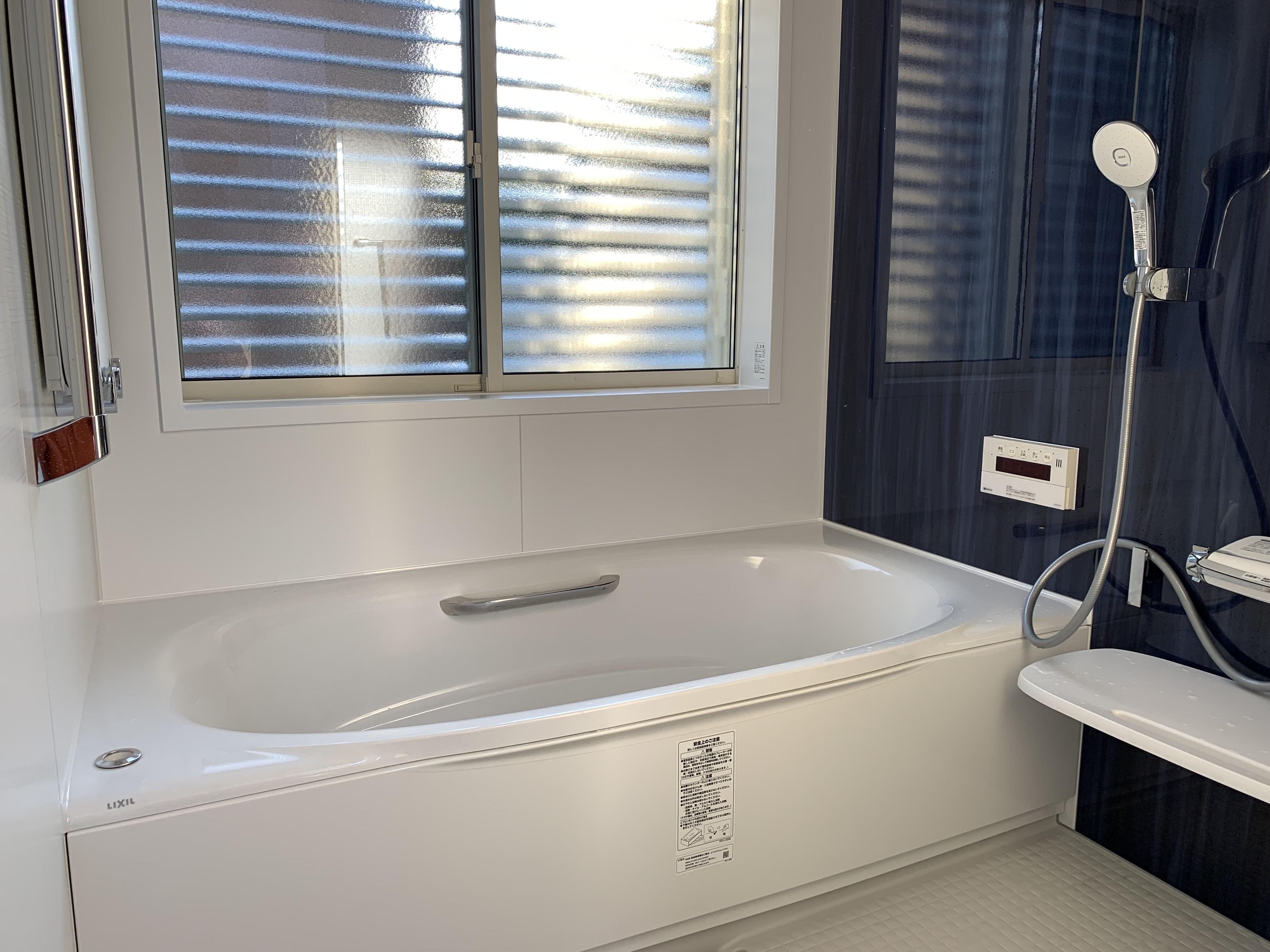 LIXIL『アライズM』 1坪タイプ浴槽は、ダブル保温構造でお湯が冷めにくいサーモバスS床は、スポンジでお掃除ラクラク。寒い冬場でも、冷っとしないキレイサーモフロアその他快適なバスタイムを過ごす機能が、標準仕様となっています。サッシ部は断熱性能に優れている、サーモスLを設置。外側には目隠し可動ルーバーを取付、外を気にすることなく入浴できます。※アフター写真はルーバーを開けている時の画像です。