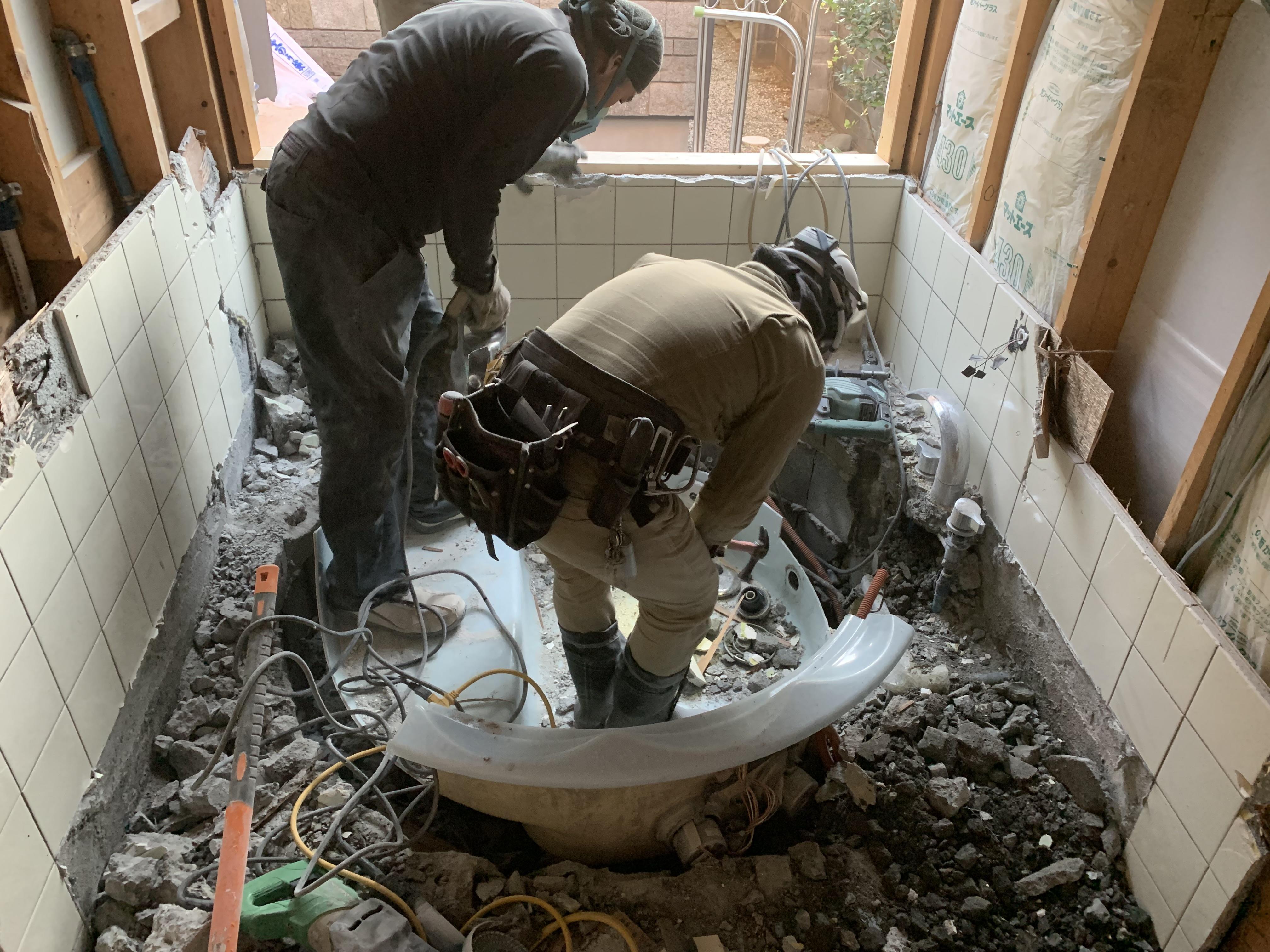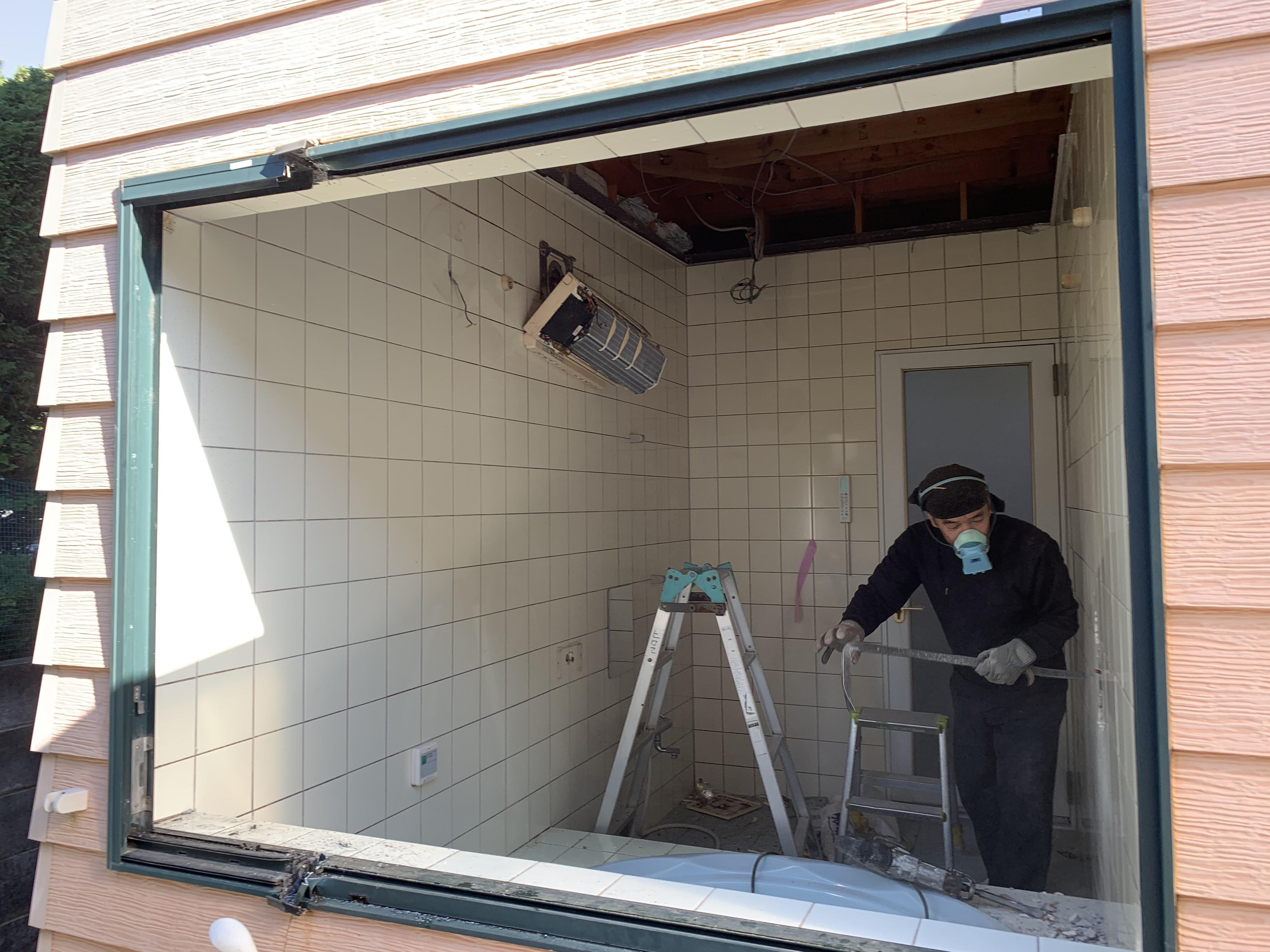 既存のFIX硝子窓+ルーバー硝子窓も撤去するので、サッシ部分も解体します。※外部より撮影