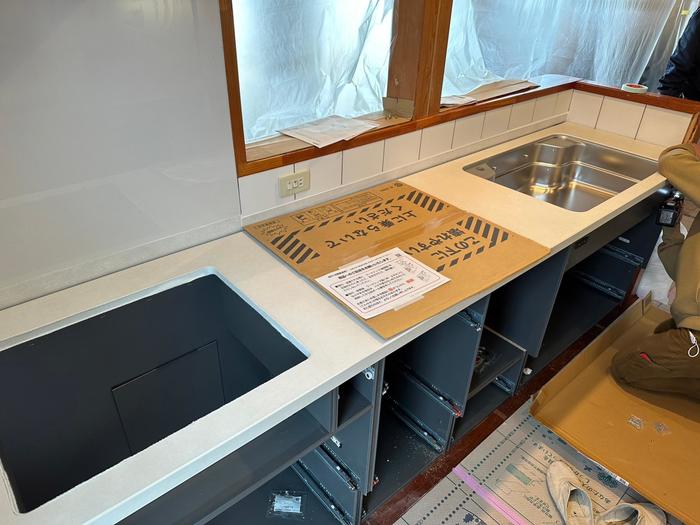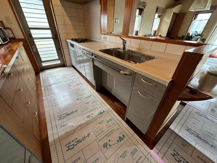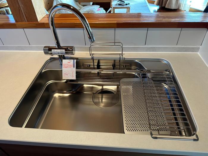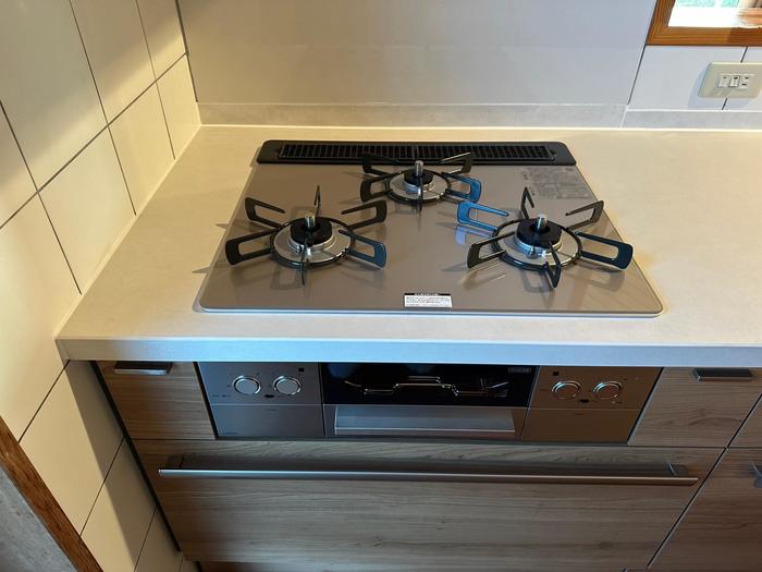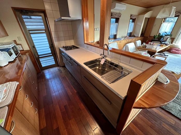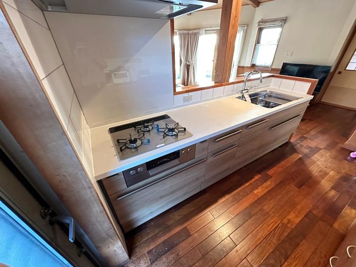使い勝手が少し悪かったのと、キッチンが古くなってしまったので 今回、【LIXILのキッチン:リシェル】に交換致しました!! 綺麗な木目ラインの扉色に、セラミックトップのホワイトカウンターです! 収納力もUPしたので、使い勝手も向上しました!!