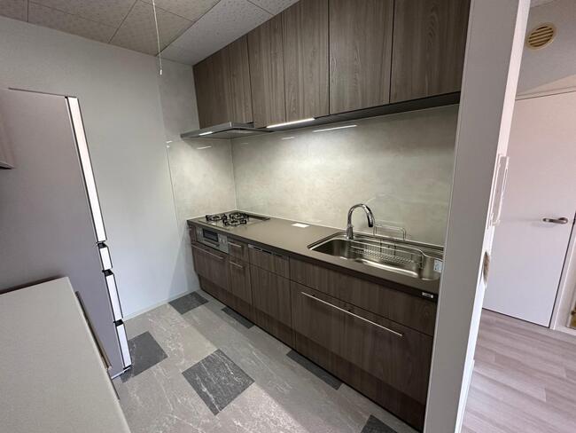 マンションのリノベーションを行いました。 主に壁と床を施工して、和室だった居室を洋室にしました。 乳白色の間仕切り扉を使って、プライバシーは守りつつ、部屋に圧迫感を持たせない 空間になっております。 キッチンも交換し、およそ50年余りのキッチンともオサラバ致しました。