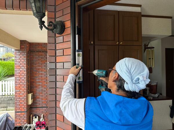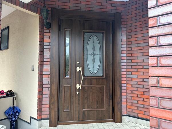 ドアチェックが壊れてしまったので交換に至りました! 雰囲気は壊したくないとのご要望でしたので、ステンドグラス調の リシェントに選択しました!