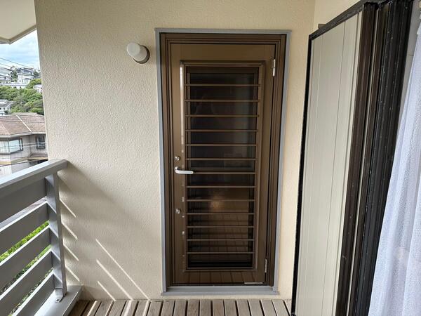 今回、ベランダに出る勝手口が古く重くなってしまった為 リシェント勝手口に交換致しました! 交換したことで、開閉がスムーズになるのはもちろんのこと 採風式なので風を取り込むこともできます! キーも2重ロックなので防犯性も兼ね備えてます!!
