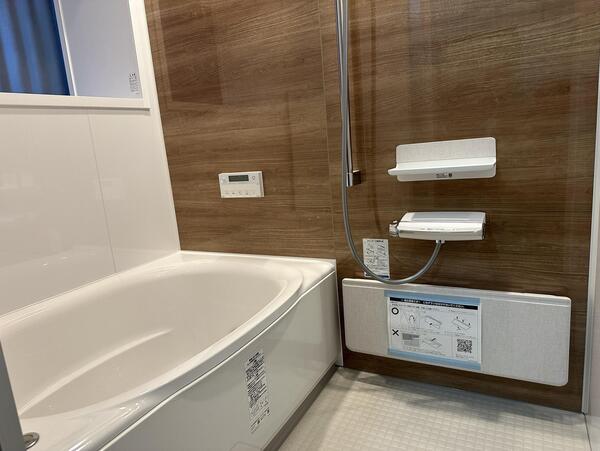 施工後のユニットバスは、木目調のパネルでぬくもりを感じさせる、暖かい空間となり、