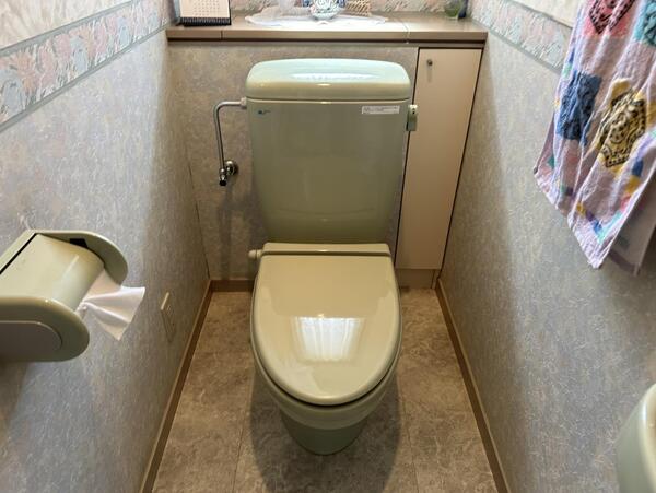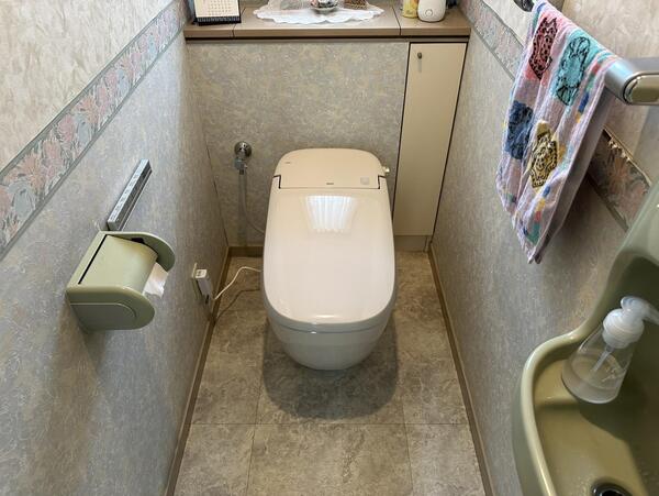 古くなってしまったトイレをタンクレスのサティスに交換しました! タンクレスだと化粧室の空間が広く取れて、開放的な気持ちになりますね!