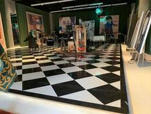 ハーリキンチェック貼りのフロアタイル
