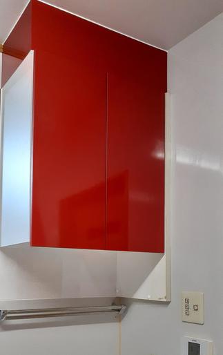 選ばれたのは、ダウンウォール付の吊戸棚です。これで、高いところに収納したものもラクに取り出せます。