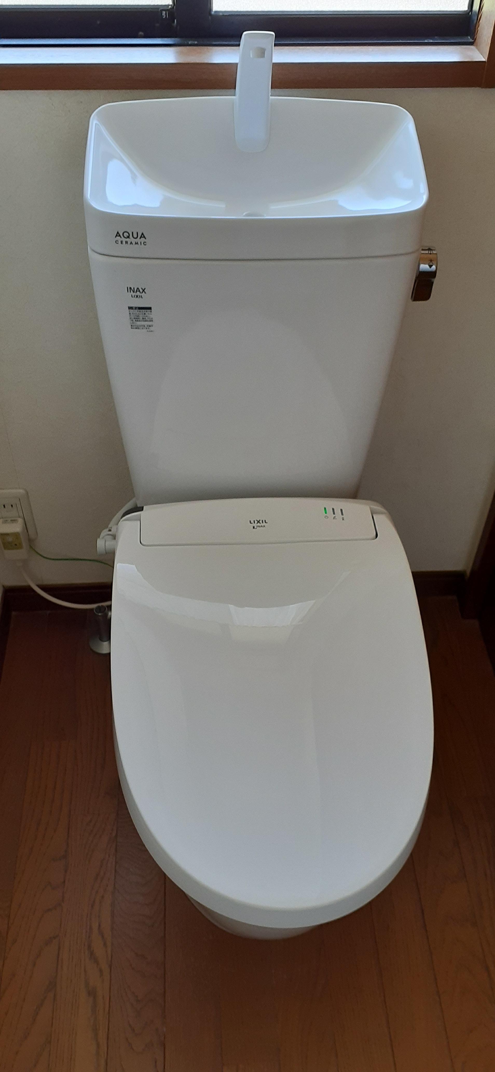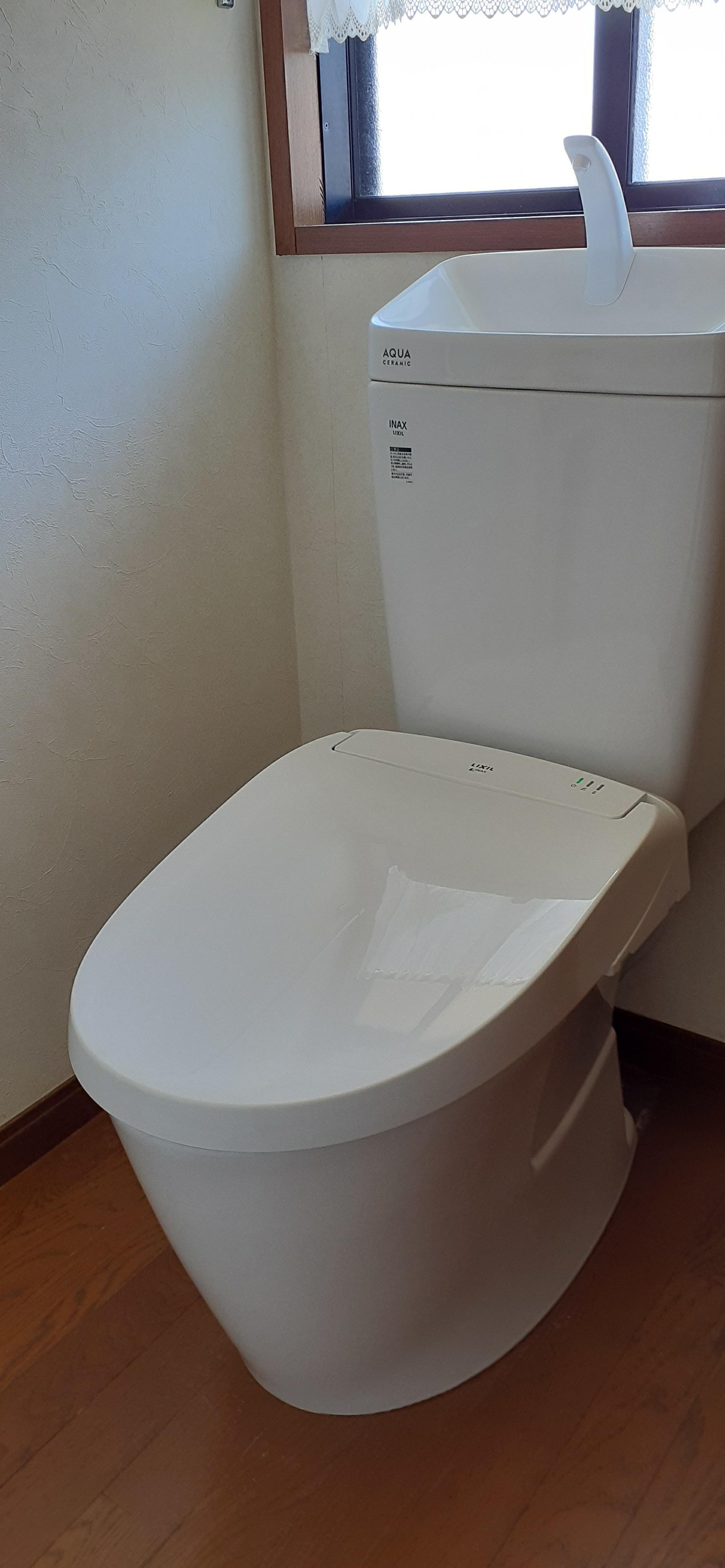 ご自宅の2階トイレの改修工事をさせていただきました。 便器部分はお掃除がラクラクなアクアセラミック、そしてフチレス形状なので汚れがサッと拭きとれます。 便座部分は、便座が真上に上がりお掃除が大変だった便器とのすき間もラクラクお掃除が出来ます。 これで、トイレのお掃除のストレスは軽減されます。