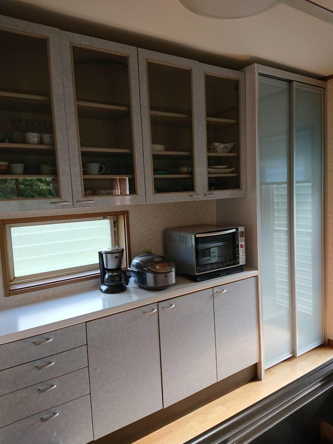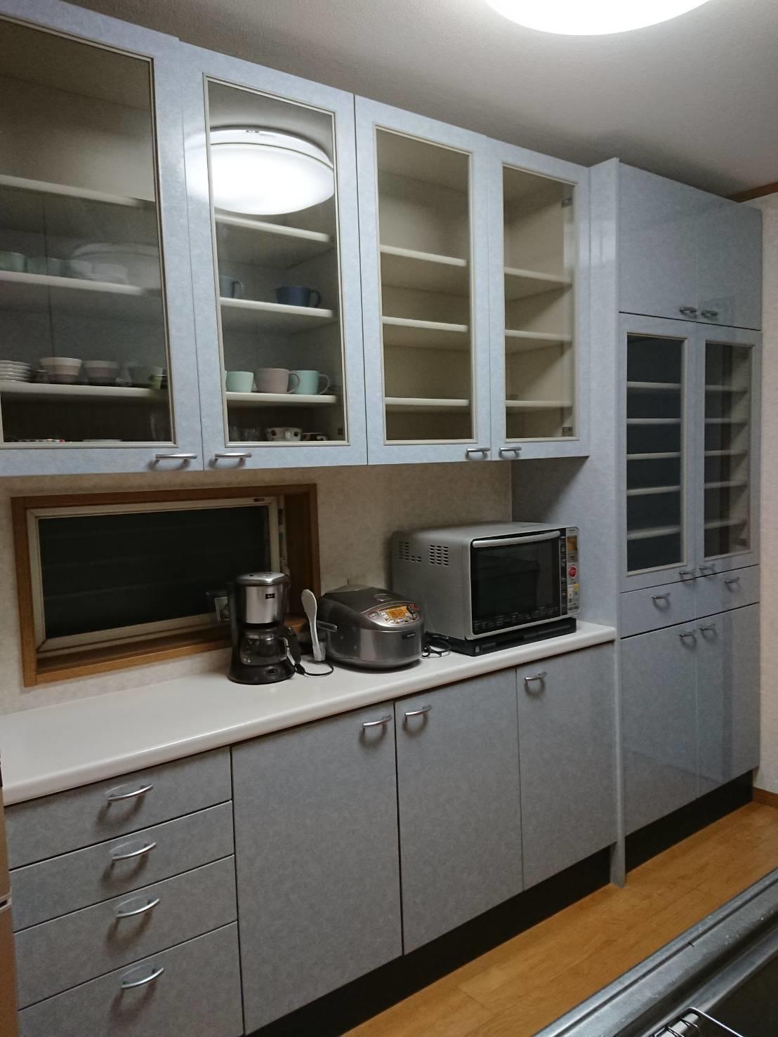 キッチン収納の改修工事をさせていただきました。 収納力のあるスライディングドアストッカーを選ばれ、たくさんある食器類もこの収納にスッキリ納められます。 収納内の棚板は、食器の高さに応じて移動ができ、色々な食器の収納に対応出来ます。 これで、収納のお悩みは解消です!