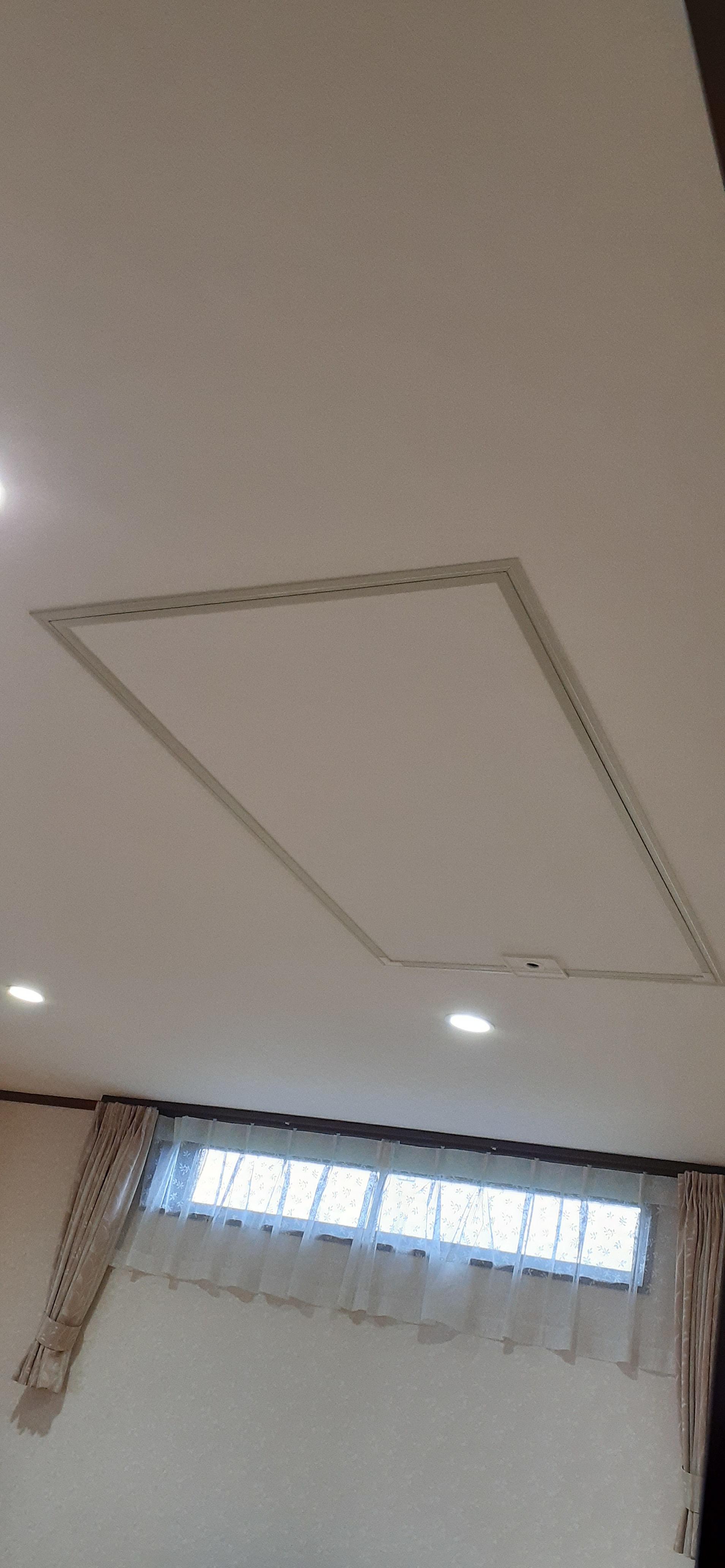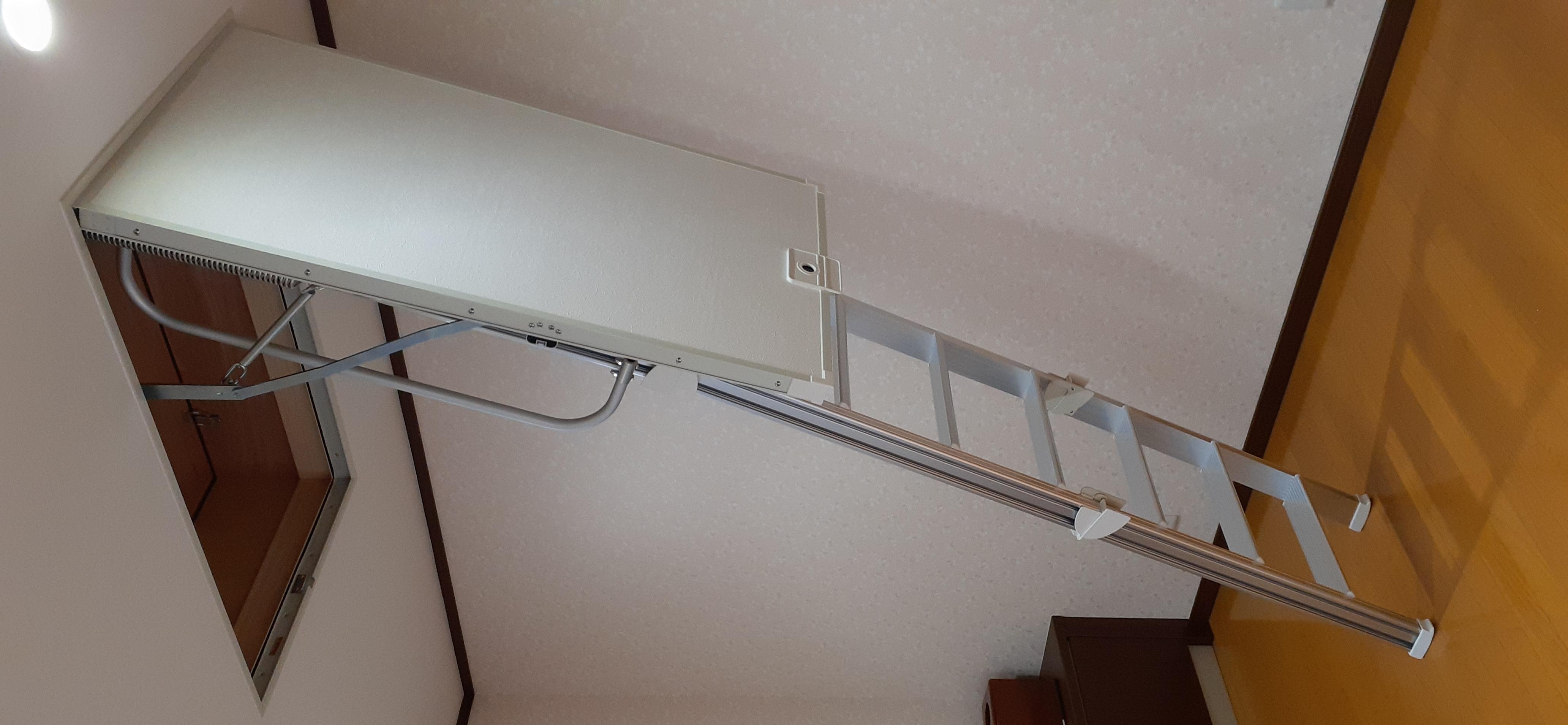 本日は、天井階段の取付工事をさせていただきました。 天井裏の出入りをスムーズにするために階段を取り付けたい、とのご相談を頂き、今回工事をさせていただきました。無事に取付も終わり、天井裏への出入りもスムーズになり有効活用していただけると思います。